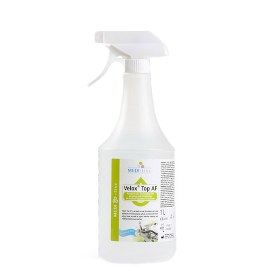 • Το Velox Top AF, έχει ευρύ μικροβιοκτόνο-βακτηριοκτόνο-μυκητοκτόνο φάσμα και εξαιρετικές ιδιότητες καθαρισμού χάρη στην  πρωτοποριακή του φόρμουλα επιφανειοδραστικών παραγόντων και της τεχνολογίας nanomicelle. με ευρύ φάσμα μικροβιολογικής δραστηριότητας,σύντομους χρόνους επίτευξης και εξαιρετικά αποτελέσματα καθαρισμού και απολύμανσης.